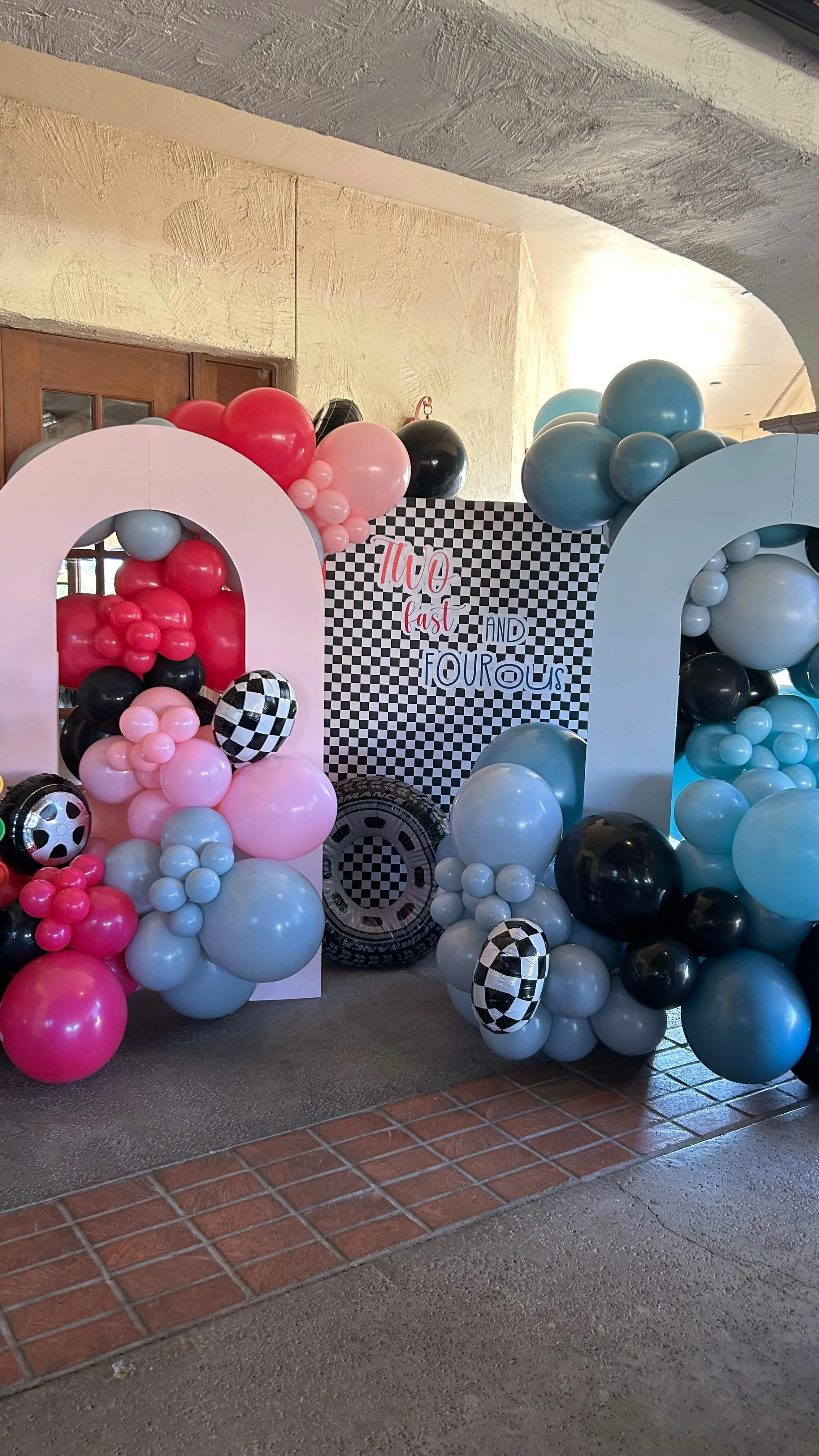 One of a kind balloon garlands, arches, towers and backdrops. Designed, delivered, and installed on site by us!